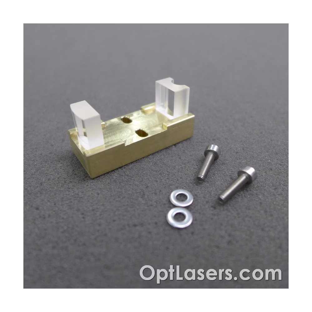 Optický systém pro snížení divergence laserového paprsku. Tento optický systém obsahuje jeden pár válcových čoček s 6násobným zvětšením a jeden kus mosazného držáku.