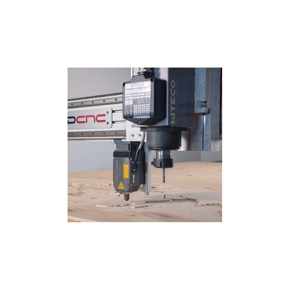 Dens kompakte design inkluderer et luftaktiveret Z-udplaceringssystem, der muliggør montering af laseren på begge sider af PRO Z-aksen. Den bevæger sig nemt i position til laserskæring og trækker sig tilbage, når den ikke anvendes, hvilket understøtter problemfri overgang mellem laser- og spindle- eller plasmaoperationer.