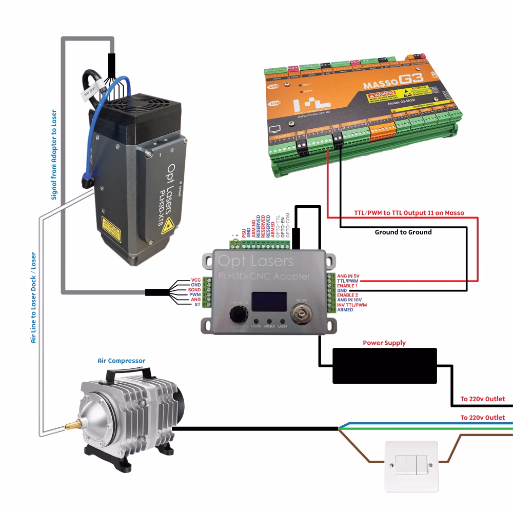 ✔ Skaber forbindelse mellem PLH3D-CNC Adapter og MASSO G3 eller MASSO G3 Touch Controller.