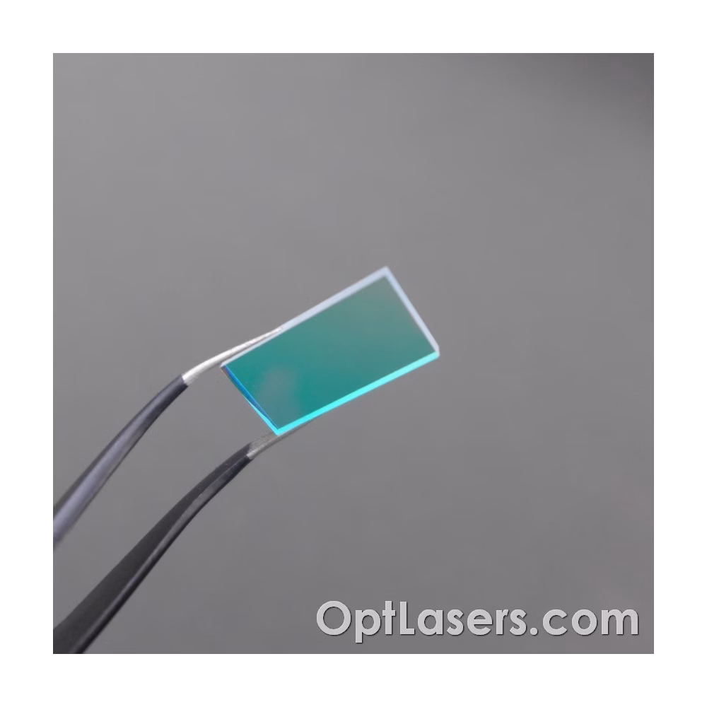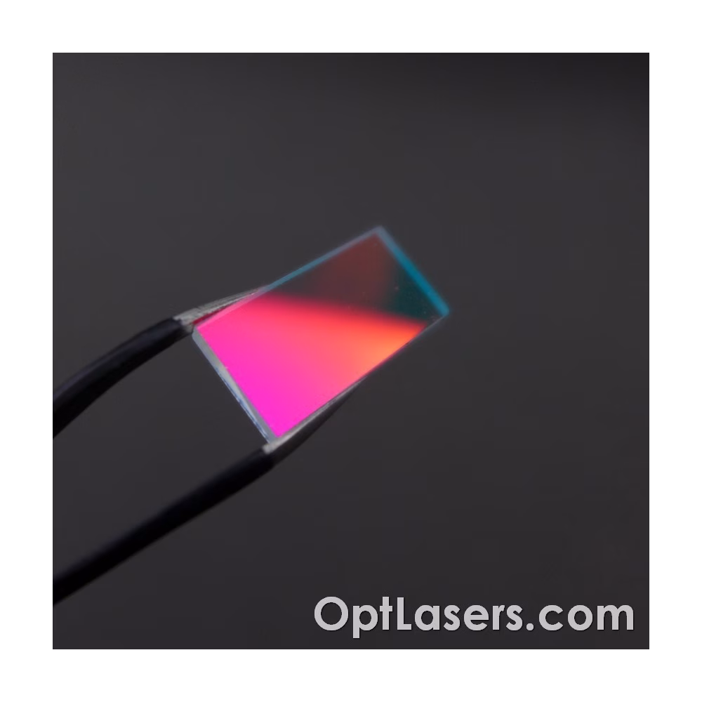 Der Dichroitische Spiegel R/G von Opt Lasers reflektiert ROTES Licht > 99% und lässt GRÜNES Licht > 97% hindurch