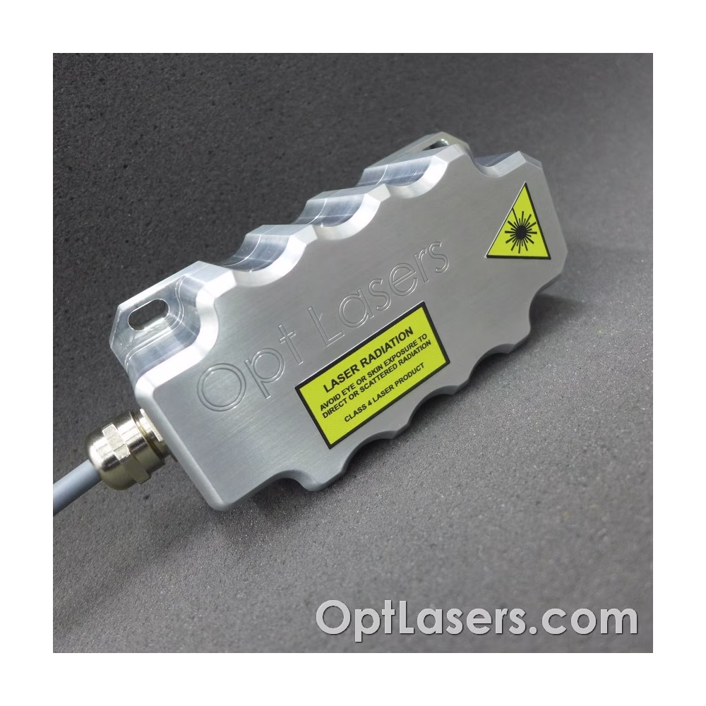 The diode along with the entire optical system is mounted in a stylish housing which ensures both protection and cooling. To enable continuous work of the module, for example in a laser projector, it must be placed on an aluminum plate which allows for heat dissipation (thermal grease significantly improves the cooling of the module). It is a solution that not only saves space in the projector cabinet but also reduces the level from which the beam is emitted. This is aimed at meeting the demands of customers who more often than not look for compact high-power modules.