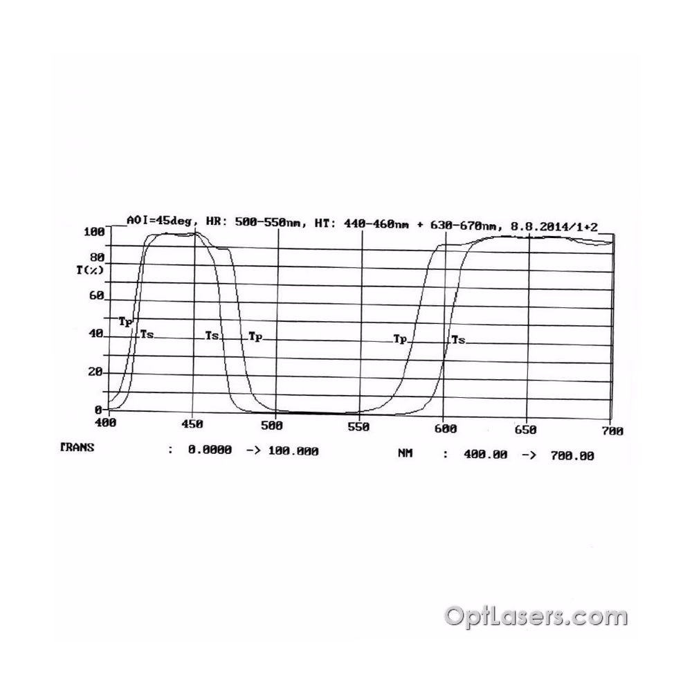 Le Miroir Dichroïque G-RB KVANT 10 x 20 x 2 est utilisé pour combiner la lumière laser ROUGE ou BLEUE avec la lumière VERTE.