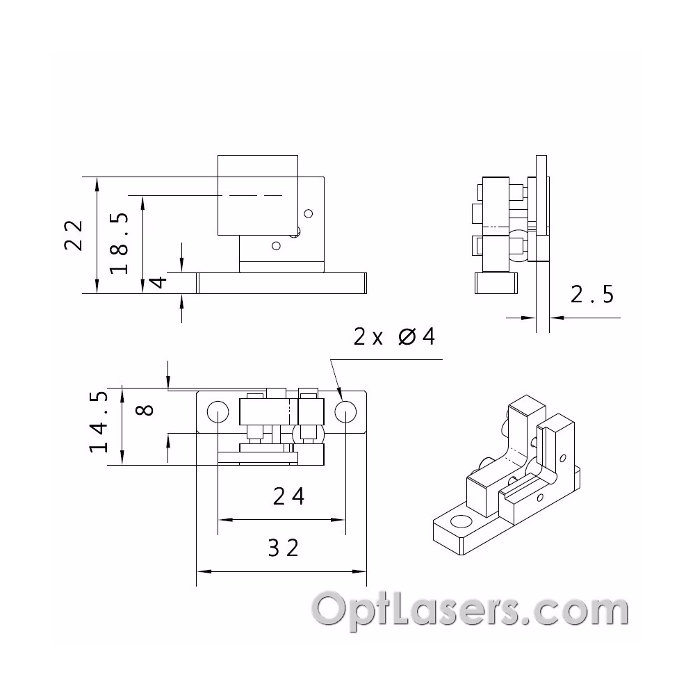 A tükörtartó új változata. A rugók helyett használt kiegészítő blokkoló csavarnak köszönhetően a tartó sokkal merevebb, mint a rugókat használó. A kis méret lehetővé teszi a tartó használatát még a kis projektorokban is.