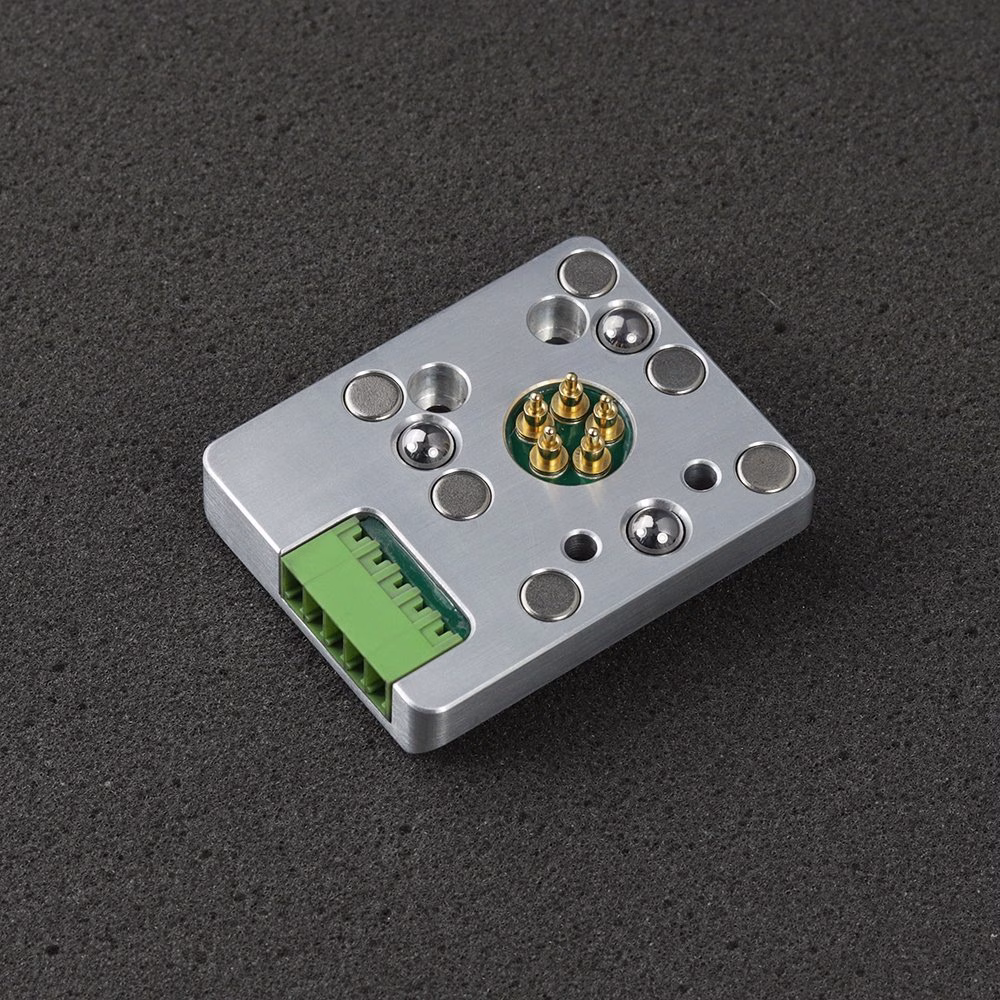 Potenti magneti al neodimio, che agiscono come molle, fissano le due parti della docking station laser l'una vicino all'altra. Questo garantisce un posizionamento preciso della testa del laser di incisione sull'unità di attacco laser per router cnc LaserDock, eliminando l'ultimo grado di libertà. Si tratta della distanza tra gli elementi dell'attacco laser magnetico.