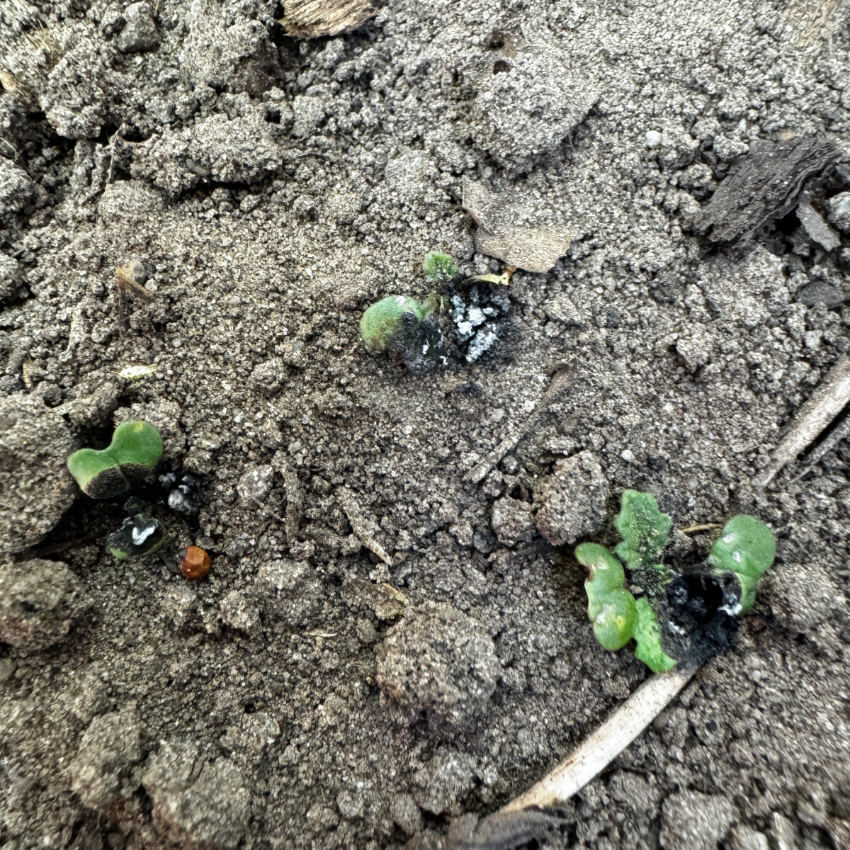 The images above show weeds scorched using the Opt Lasers 120W laser weeding system.