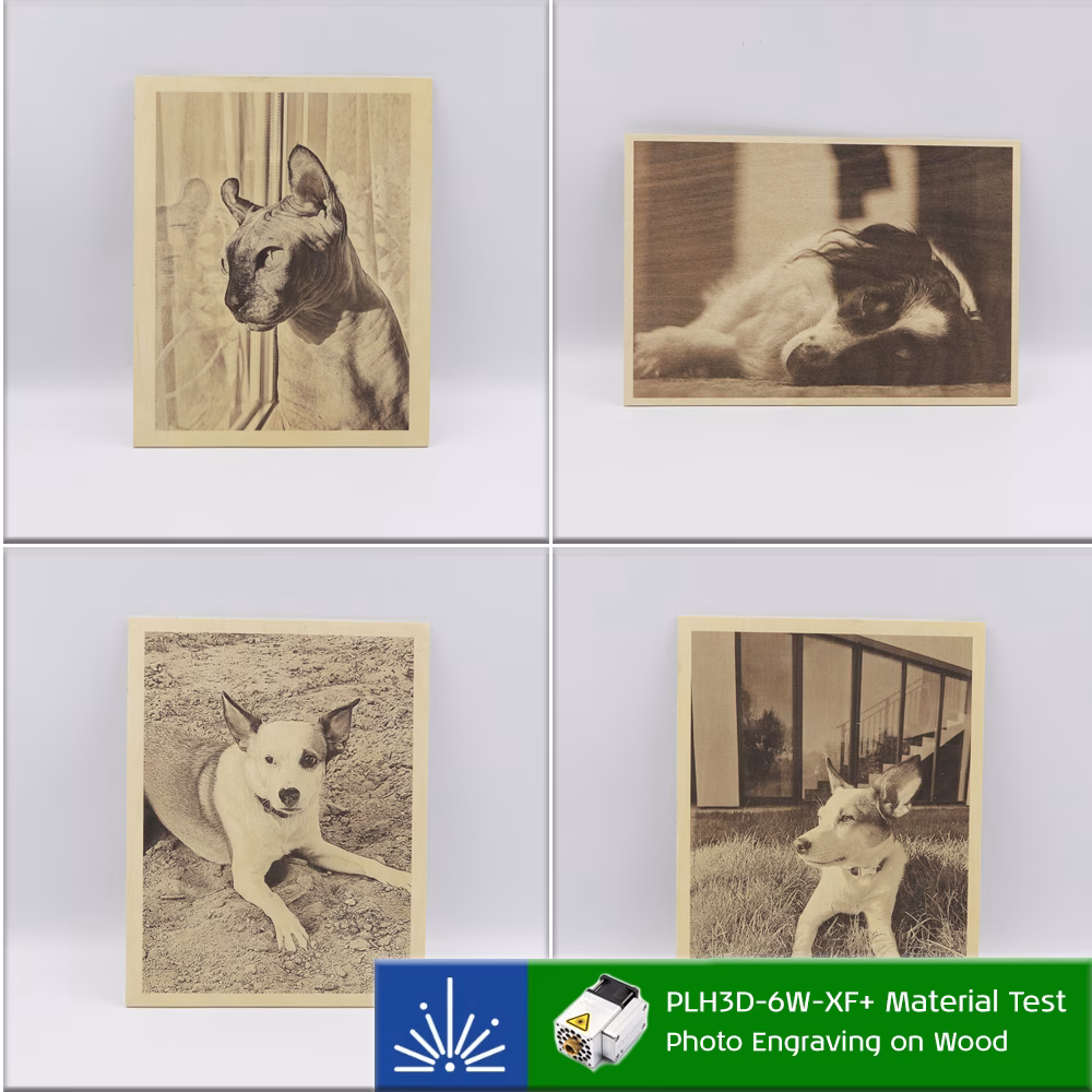 Corte e gravação - O laser azul PLH3D-6W-XF+ permite cortar e gravar vários materiais, tais como madeira, cartão, borracha, papel, têxteis, couro, plástico, balsa, contraplacado e muitos outros, bem como marcar aço inoxidável, titânio e subtipos de aço de baixa condutividade térmica.