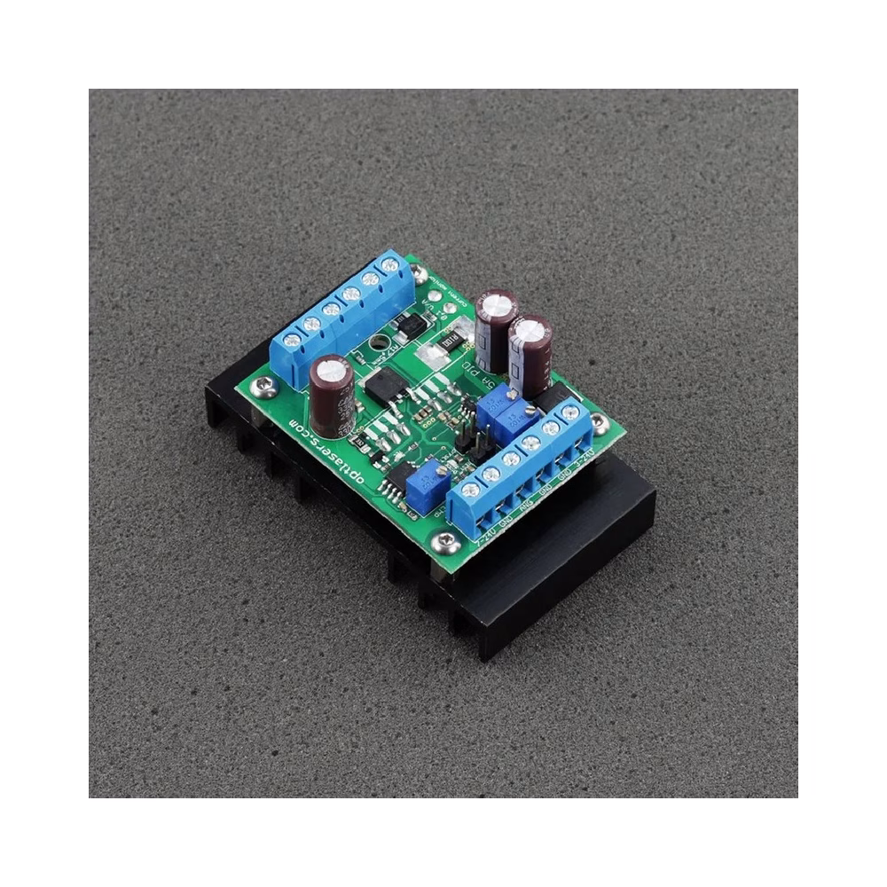 Driver de diodo laser monocanal de 10 A, 3-24 V com circuito controlador de temperatura digital e dissipador de calor anodizado. O dissipador de calor é dimensionado adequadamente para lidar com até 10 W de dissipação de potência no transistor de potência. O controlador de temperatura utiliza algoritmo PID para manter a temperatura desejada com precisão.