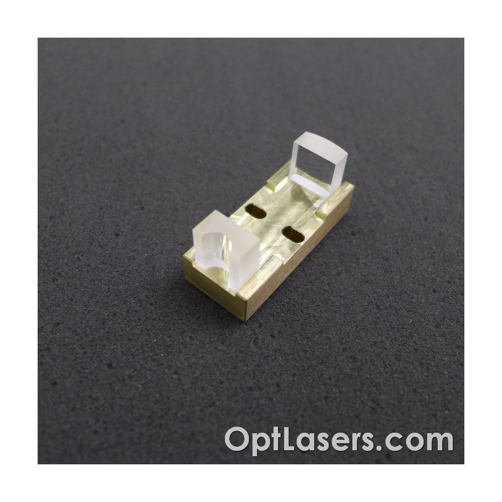 O sistema ótico para reduzir a divergência do feixe laser. Este sistema ótico inclui um par de lentes cilíndricas de 6x e uma peça de montagem em latão.