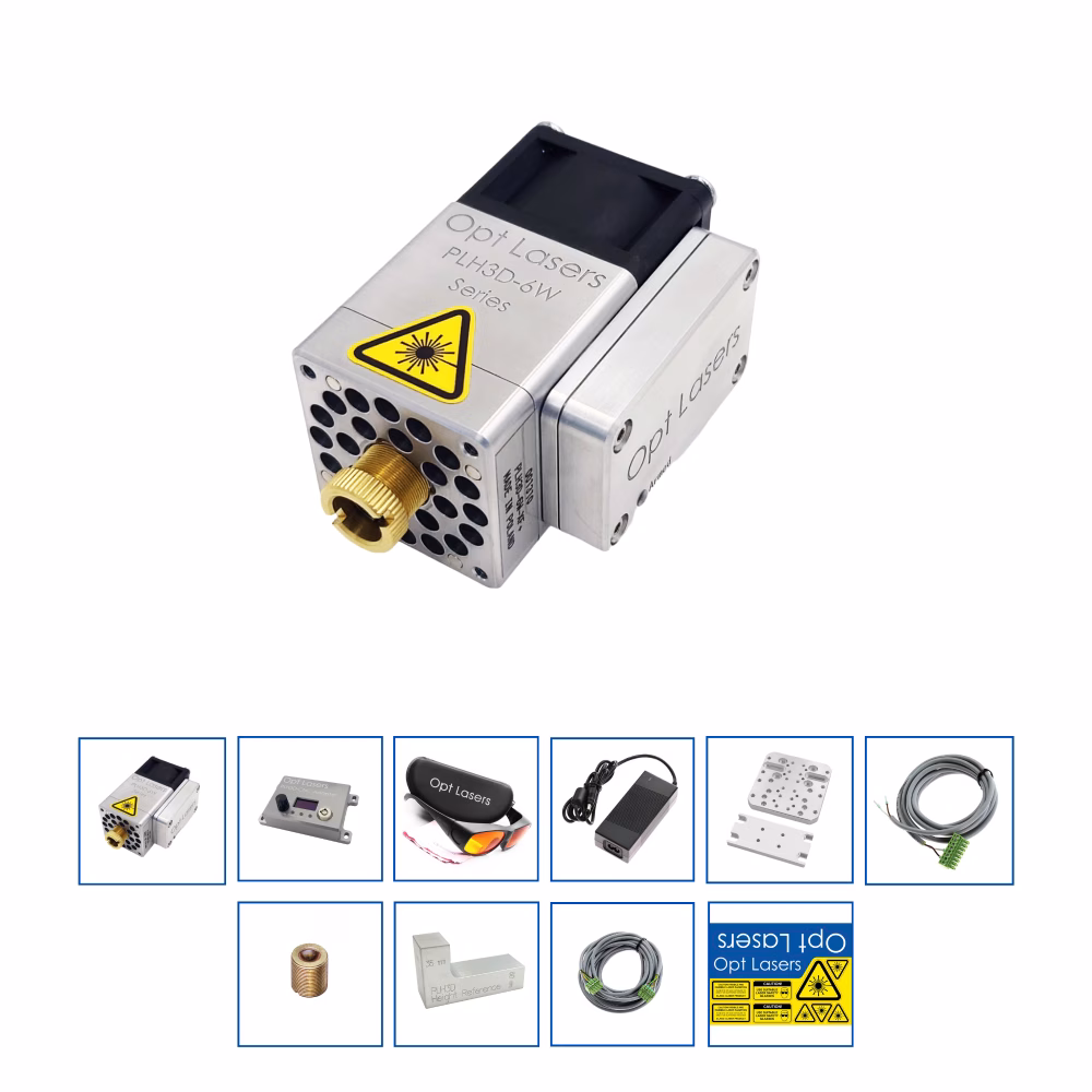 Включает в себя: Лазерная головка, адаптер PLH3D-CNC, крепление и винты, блок питания, проводка, инструмент для определения высоты