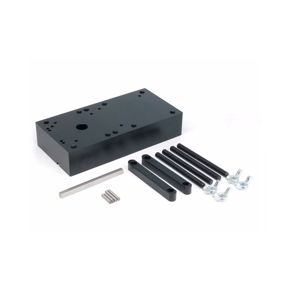 Крепление предназначено для установки различных лазеров, в нем используются фиксирующие штифты и два фиксатора для крепления лазера. Лазер крепится к фиксирующим штифтам, а барашковые гайки фиксируют прижимы, надежно закрепляя лазер на креплении.